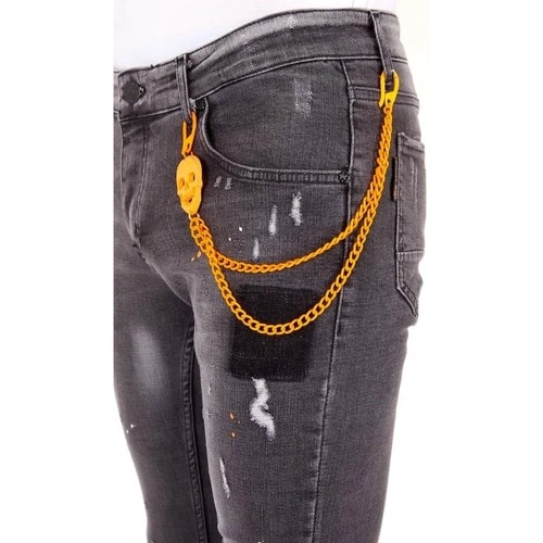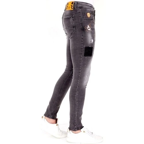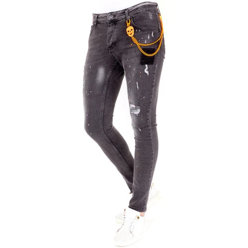 -Exclusieve Grijze Jeans met Verfspatten Heren